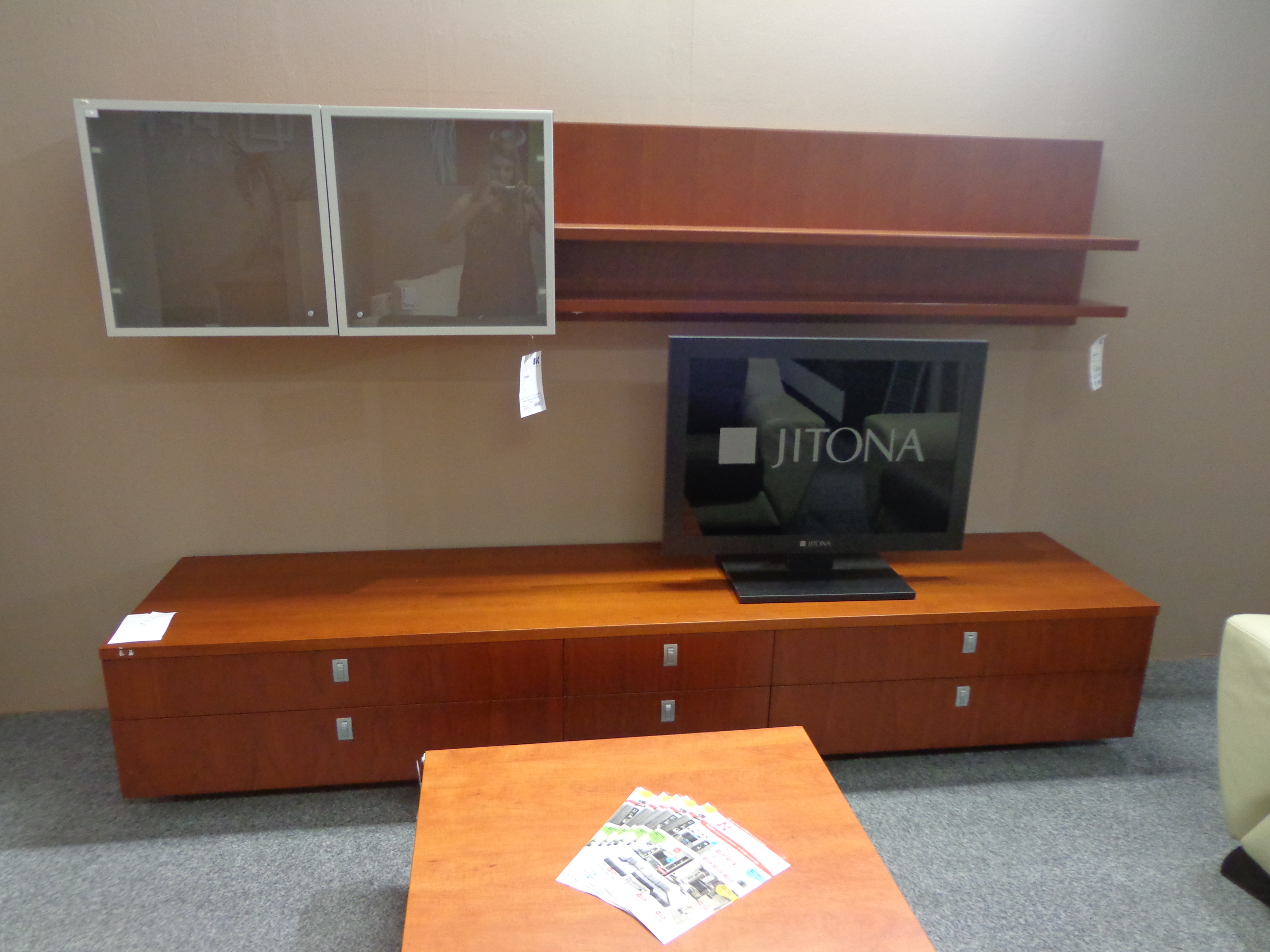 Combo obývací stěna z přírodní dýhy v barevném provedení třešeň od českého výrobce DŘEVOTVAR ZNOJMO.