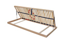 Praktický rošt Duostar je skvělou volbou pro pohodlné a zdravé spaní. Postelový rošt s bočním výklopem pro přístup do úložného prostoru řeší nedostatek místa v ložnici. Zdvih pomocí textilního úchytu usnadní každodenní manipulaci. Pružné lamely uložené ve dvojicích v kaučukových pouzdrech jsou rozložené do 5 anatomických zón. Vrtané lamely v ramenní oblasti zajišťují nižší tuhost a zmírňují tak tlak na ramena. Středový popruh zlepšuje stabilitu a nosnost roštu. Posuvnými objímkami lze nastavit individuální tuhost v bederní části. Lamely opatřené fólií mají schopnost zachytávat pod matrací méně prachu, zamezují zatrhávání potahu a přenášení vlhkosti z matrace do roštu, což je plus, které ocení především lidé s alergií.