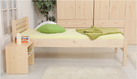 Povrchová úprava SMRK, vodou ředitelný ekologický lak. Jedná se o celomasivní provedení. Postel pro rozměr matrace 90 x 200 cm.