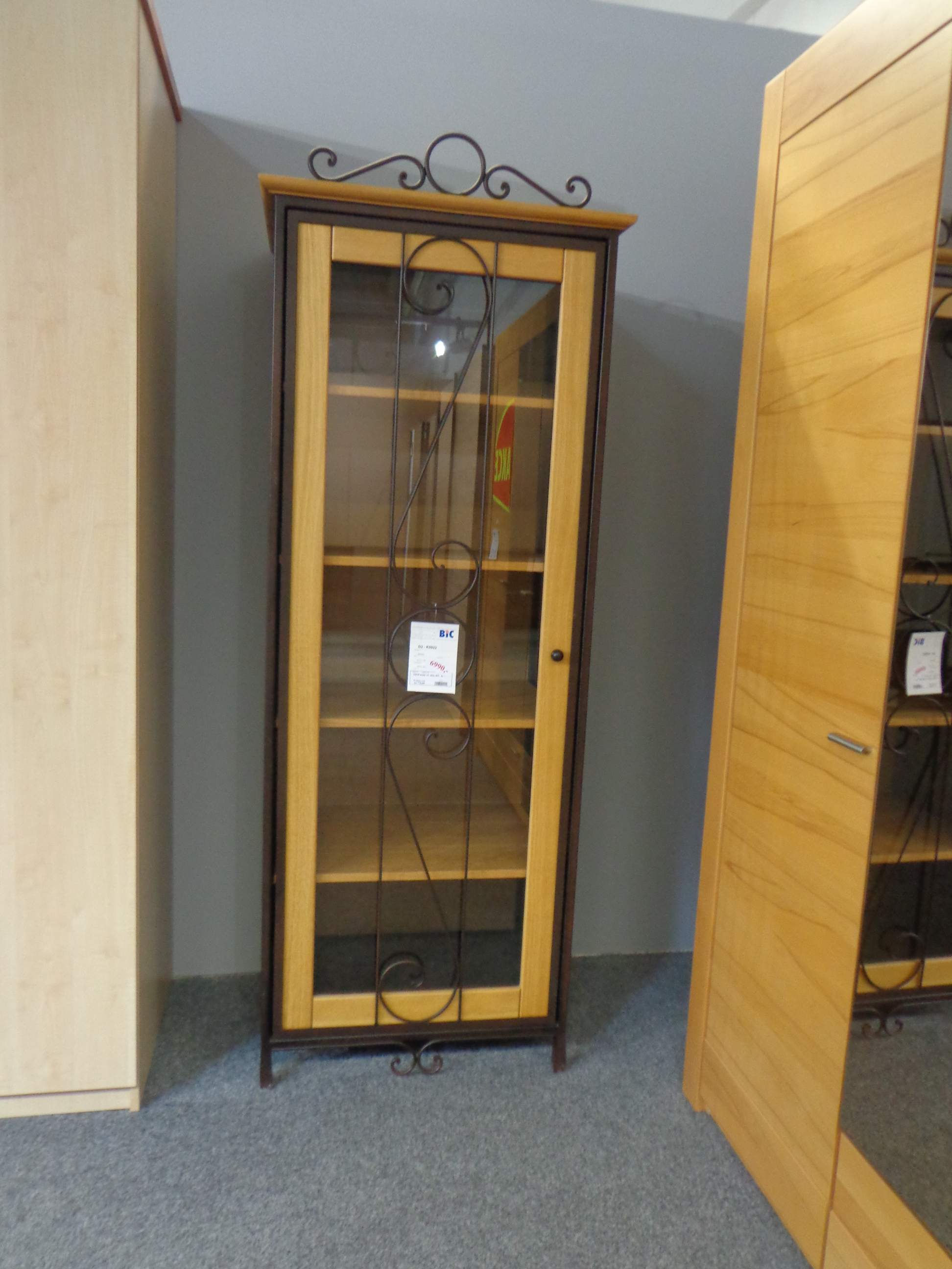 Skříň úzká K 0922 vč.skla v provedení kov/přírodní masivní dub.