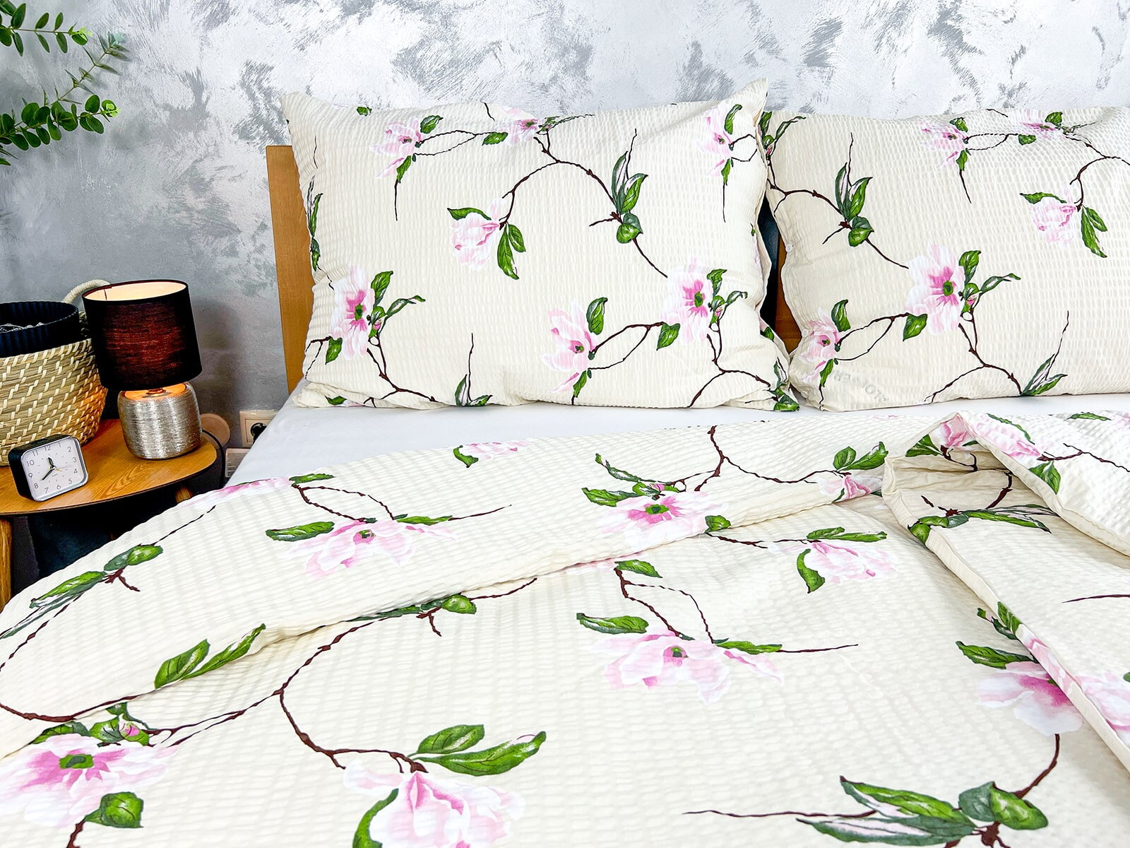 Krepové povlečení s tiskem rozkvetlých magnóliových květů na krémovém podkladě z měkké bavlny. Praktické povlečení, které potěší v každém ročním období jsou ideálně pro ty kteří milují postelové povlečení bez starostí se žehlením. Krepová struktůra bavlněného povlečení jim dodává vzdušný a nadýchaný vzhled a 100% bavlněné příze dokonalou vzdušnost a savost.