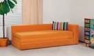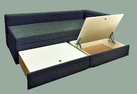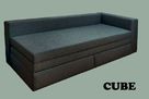 Rozkládací pohovka Cube s děleným výsuvným úložným prostorem a možností volby uspořádání čel. Jednoduchou manipulací lze vytvořit kvalitní dvojlůžko, které se osvědčí především v menších bytech.