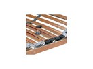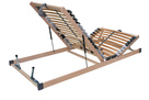 Pohodlný a odolný rošt s pouzdry uloženými nad bočnicí poskytuje vyšší komfort při spánku. Rošt s vyklápěním nožní části pomocí pístu vám zajistí jednoduchý přístup do celého úložného prostoru pod lůžkem. Zároveň lze rošt napolohovat v oblasti hlavy i nohou pro pohodlí a relax na lůžku. Speciálně uložená výkyvná pouzdra zaručují vyšší nosnost a odolnost proti prudkému zatížení. Pružné lamely v 7 anatomických zónách se natáčejí a reagují na pohyb těla při spánku. Každá část těla je tak individuálně podepřena. Změkčení v ramenní oblasti je správnou oporou páteře při spánku na boku. Středový popruh zlepšuje stabilitu roštu. Posuvnými objímkami lze nastavit individuální tuhost v bederní části. Lamely opatřené folií zabraňují pronikání vlhkosti do roštu a usnadní údržbu roštu.