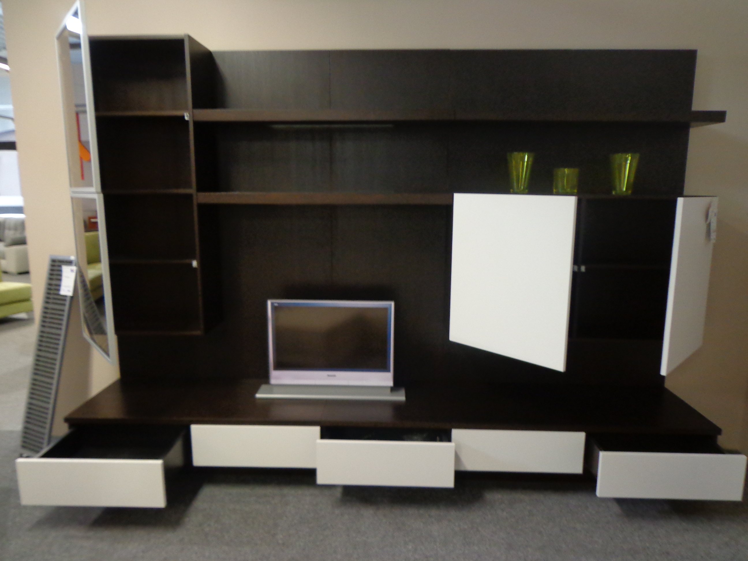 Obývací stěna RINA z přírodní dýhy v barevném provedení venge/bílá.Od českého výrobce Dřevotvar Znojmo.