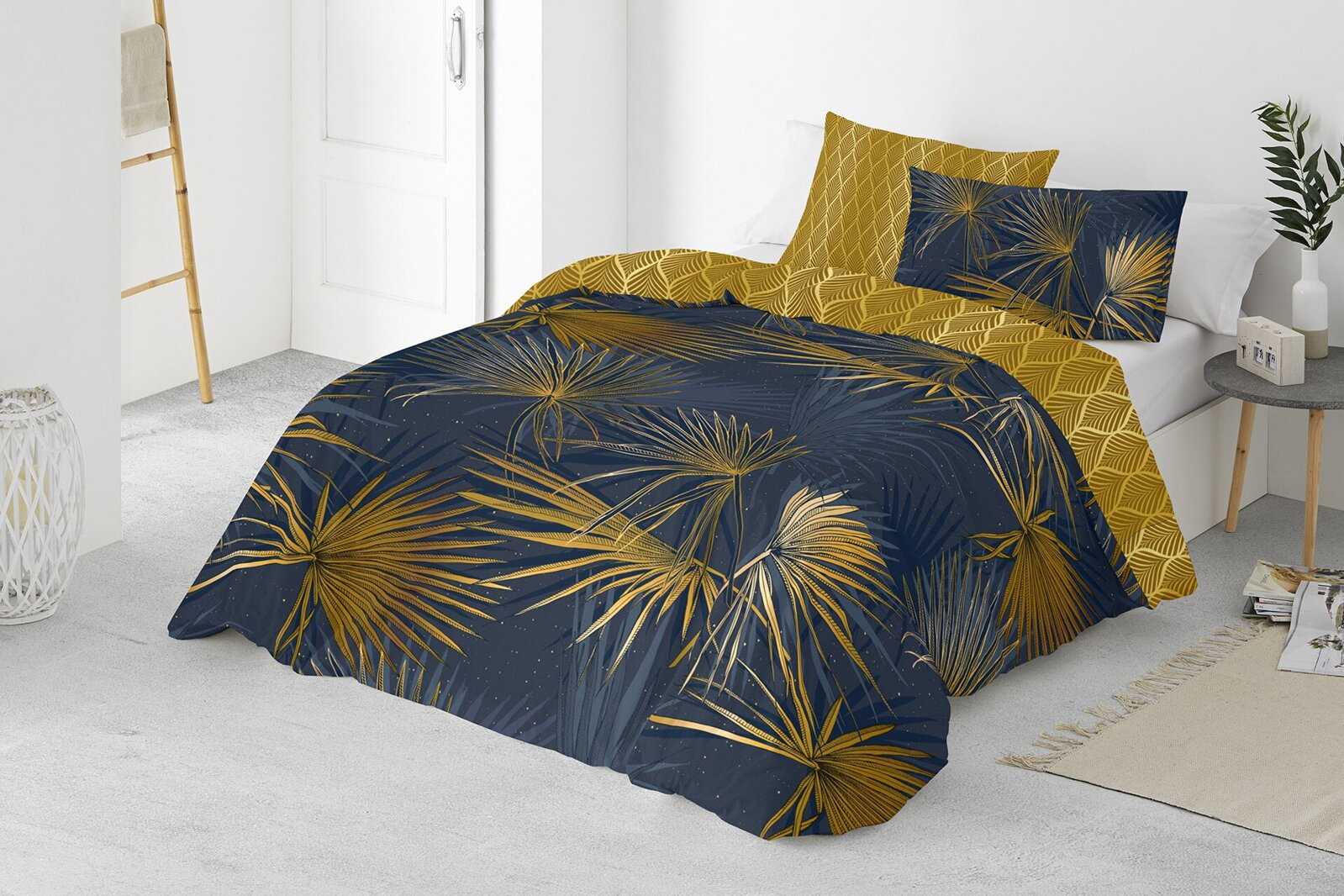 Povlečení z bavlněného makosaténu v rozměru 70x90 / 140x200 se zapínáním na zip zaujme digitálním potiskem zlatých palmových listů. Top kvalita pro váš maximální komfort a stylovou ložnici.