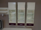 Moderní barevně laděná obývací stěna s prostornými skřínkami.