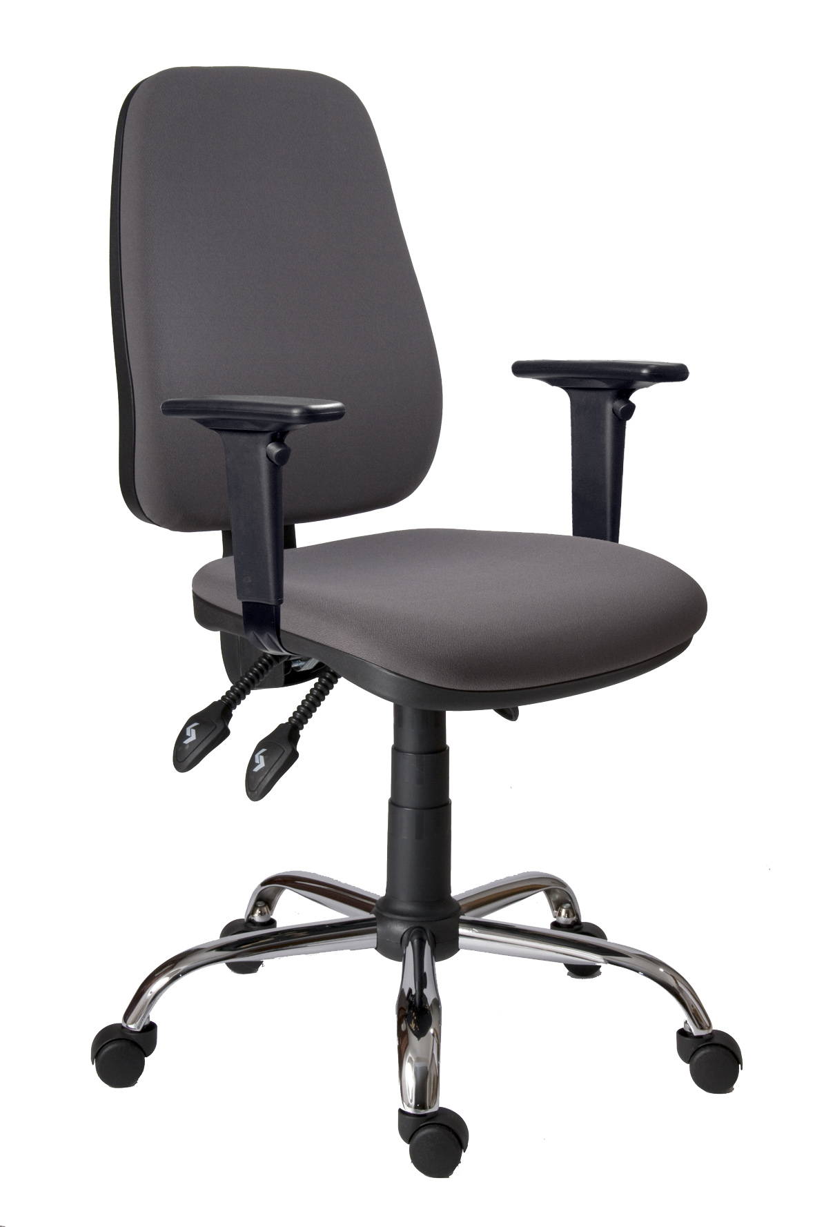 Kancelářská pracovní židle se středně vysokým opěrákem, asynchronnní mechanismus - nezávislénastavení úhlu sedáku a opěráku, nastavení výšky opěráku machanismem up-down, plynový píst.