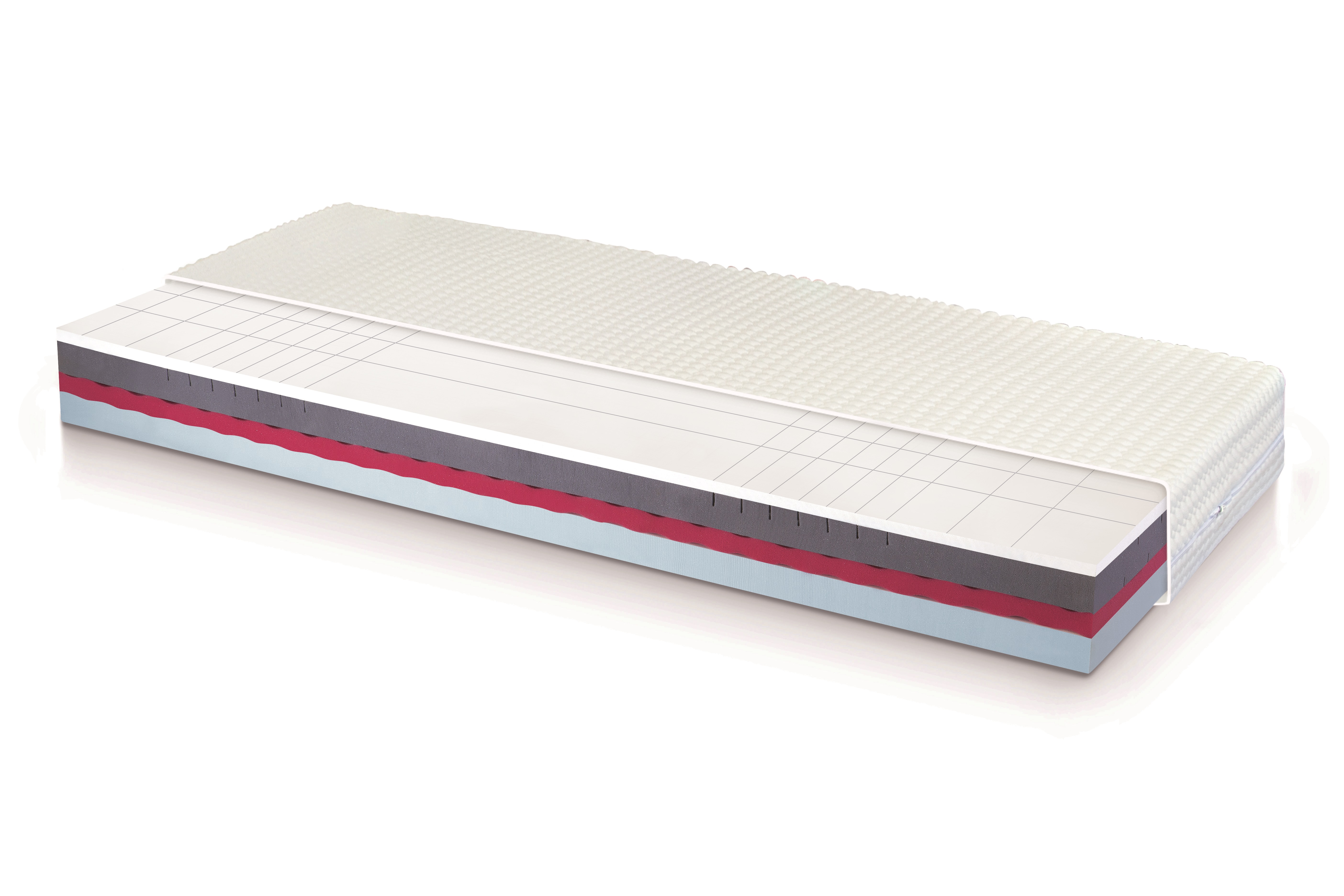 5 zónová matrace příčně i podélně prořezávaná na lehací ploše. Horní prořezávaná latexová deska zajišťuje větší životnost, lepší cirkulaci vzduchu, důležitou prevenci proti otlakům a proleženinám a celkově lepší ortopedické vlastnosti matrace.Matrace je vhodná zejména pro uživatele, kterým nevyhovují vlastnosti VISCO pěny, a kteří kladou důraz na dobré ortopedické vlastnosti matrace. Materiálové složení jádra matrace Latex (20 mm), PUR pěna (60 mm), studená HR pěna (40 mm), PUR pěna (60 mm). Matrace se dodává ve snímatelném a pratelném potahu PT pratelném na 40°C.