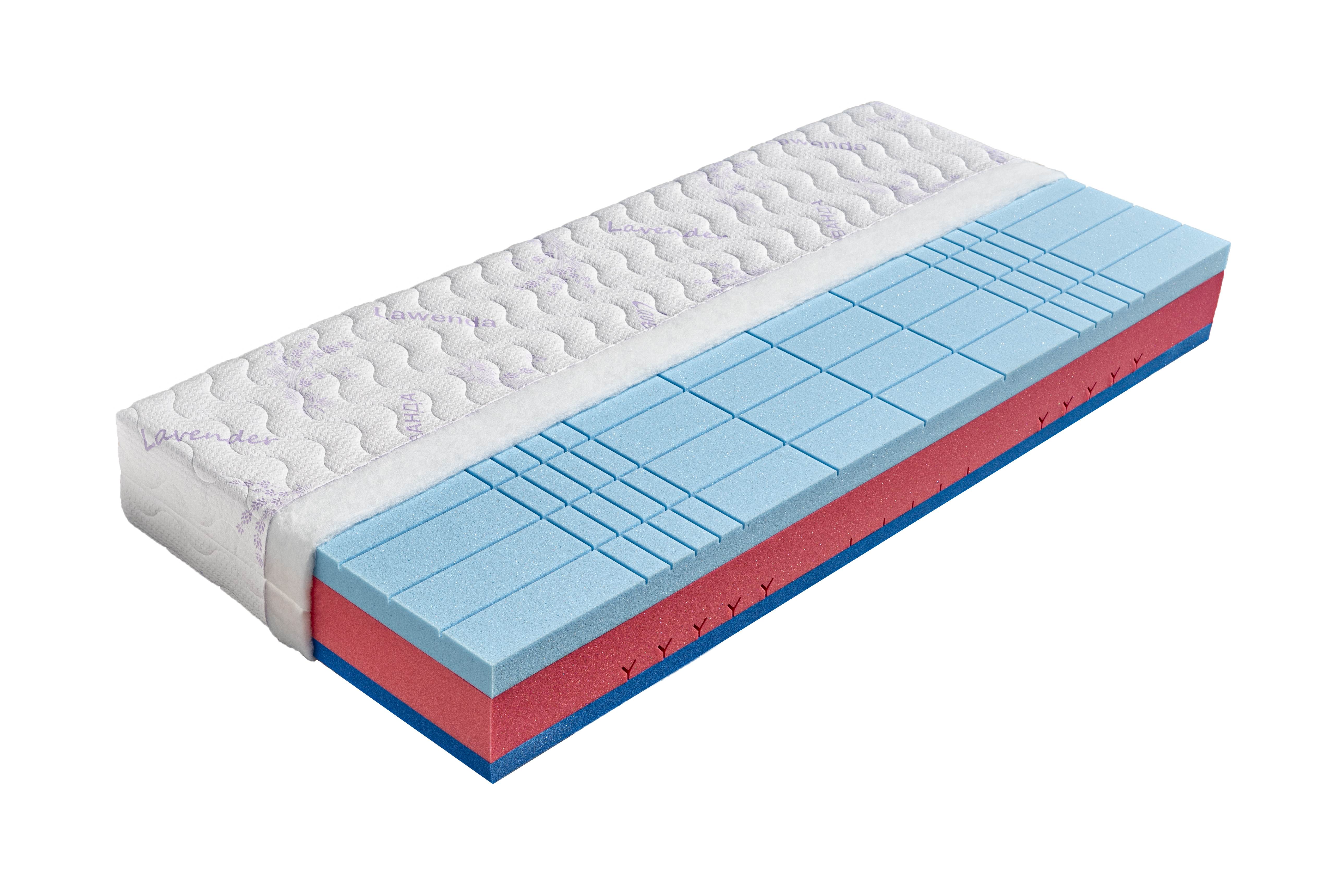 Matrace, jejíž jádro tvoří 12 cm vysoká vrstva speciální červené antibakteriální pěny (32 kg/m³) značky Sanitized, která poskytuje trvalou a účinnou ochranu proti bakteriím, roztočům a plísním. Tyto vlastnosti ocení nejen alergici, ale i ti, kteří kladou důraz na vysokou hygienu lůžka. Je navržena se zářezy ve tvaru „Y“, které napomáhají odlehčení v místech největšího zatížení - oblast ramen. Vrchní stranu matrace změkčuje oblíbená viscoelastická pěna (50 kg/m³). Je charakteristická efektem pomalého vracení se do původní polohy. Pouhým přetočením matrace získáte pevnější stranu se vzdušnou a elastickou studenou HR pěnou (40 kg/m³), která má antidekubitní prořezy v pěti zónách. Dokonale se přizpůsobí ležícímu tělu a zamezuje vzniku proleženin. Matrace je vhodná na všechny typy roštů, včetně motorových.