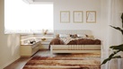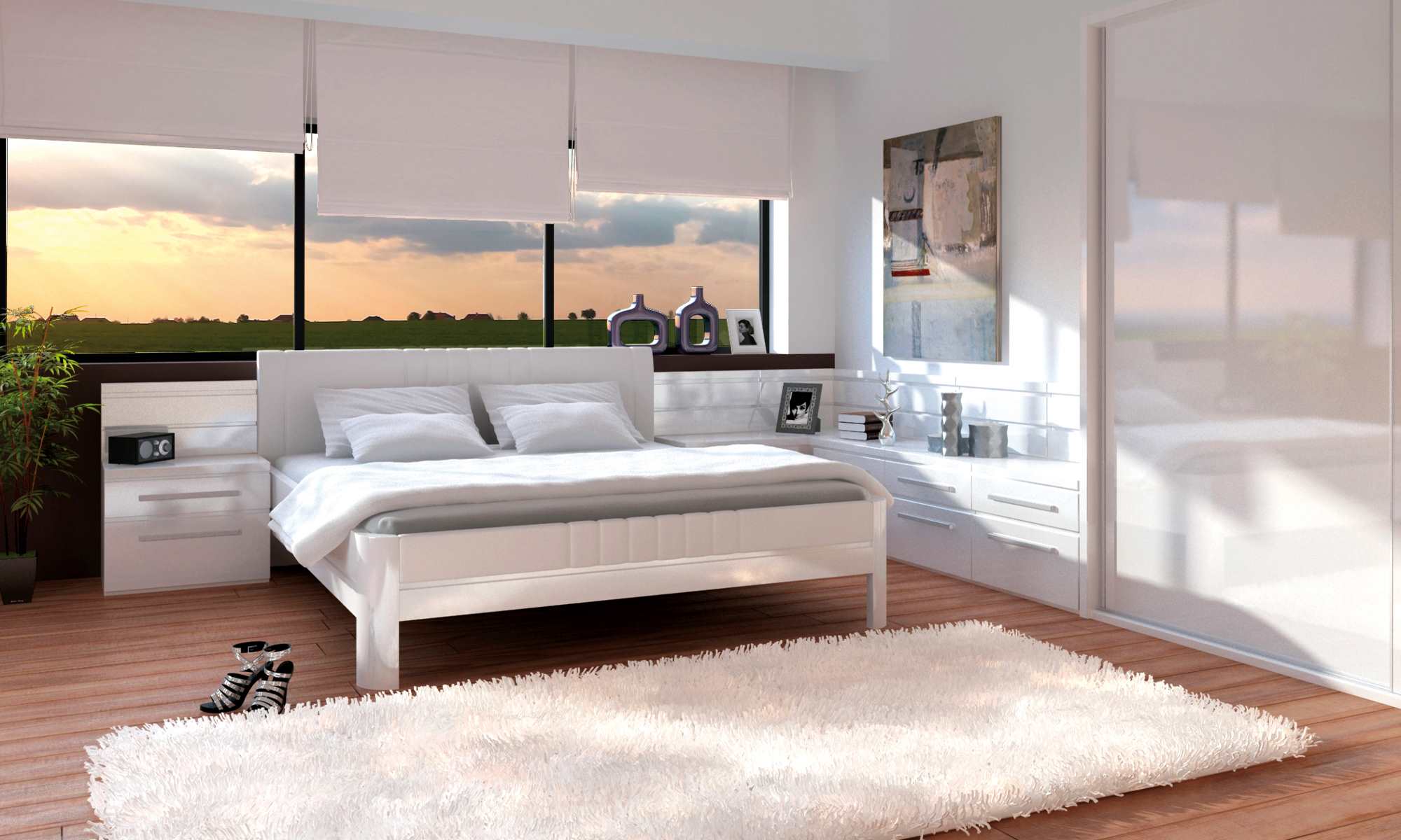 - Varianty matných barev RAL pro korpus lůžka, nočních stolků a skříněk: bílá/písek/cappuccino/antracit/slonová kost