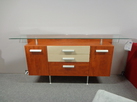 Camaro komoda se skleněnou horní deskou na nožičkách v barevném provedení calvados.