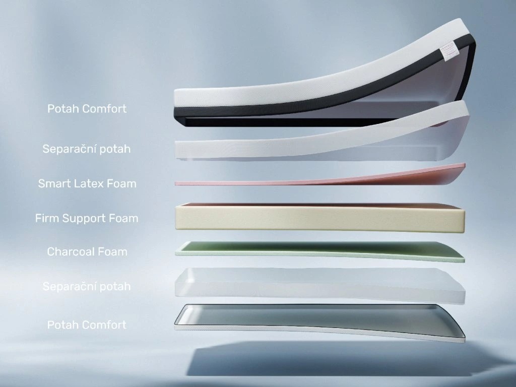| Jádro | 4 cm Air Memory Foam, 3 cm Firm Support Foam, 12 cm Taštičkové pružiny, 3 cm Firm Support Foam |