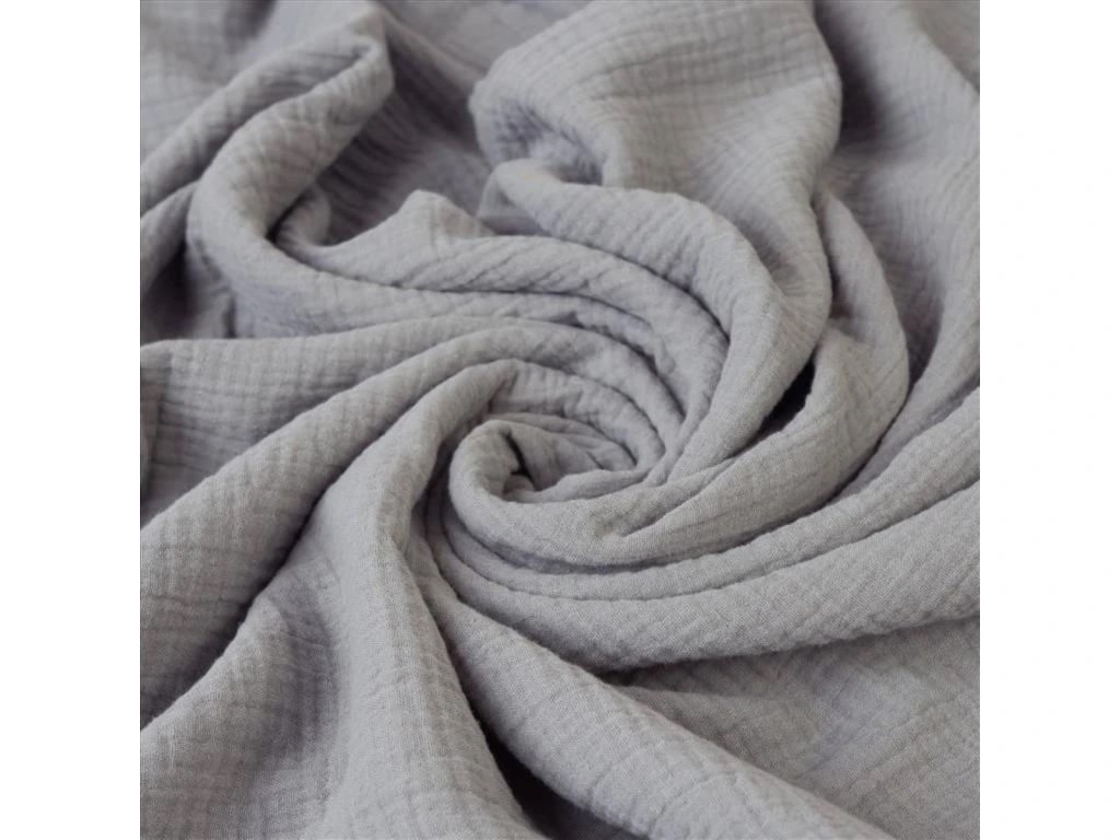 Mušelín je vzdušná bavlněná tkanina vytvářená volnou dvojvrstvou vazbou, kde jsou vrstvy spojeny pouze v jednotlivých bodech. Díky tomu má po vyprání svůj typický „zmačkaný“ vzhled, který působí přirozeně, uvolněně a stylově, bez nutnosti žehlení.