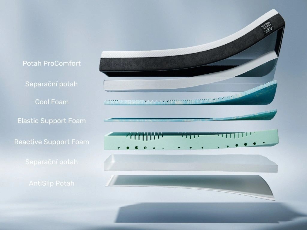 | Jádro | 3,5 cm Cool Foam, 2,5 cm Elastic Support Foam, 16 cm Reactive Support Foam |