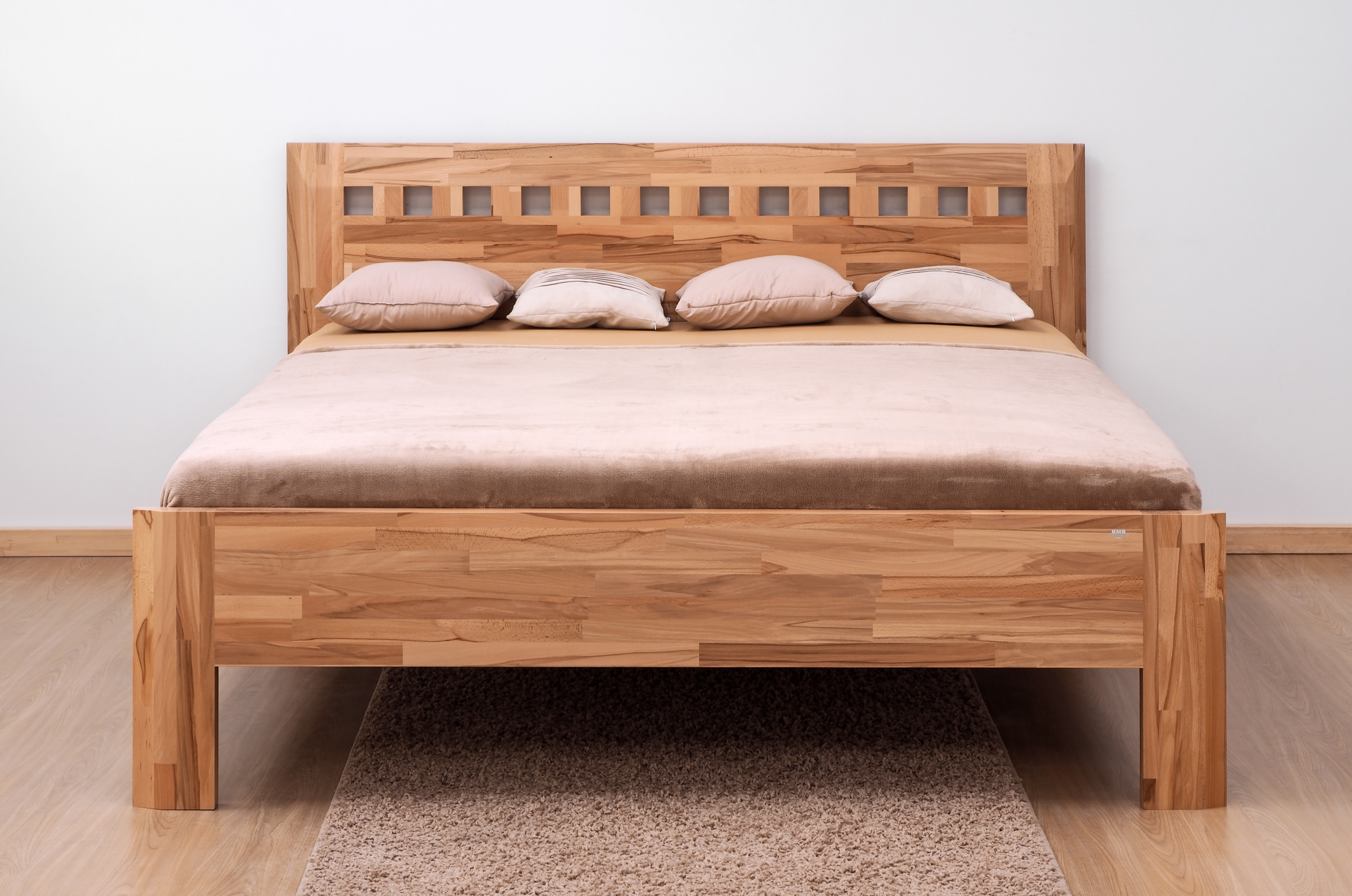 Moderní postel ELLA s mozaikovým čelem v sobě spojuje praktické využití s dokonale propracovanými liniemi. Průřezy v čele postele vytváří zajímavý vzhled, který působí geometricky dokonalým dojmem. V případě imitace dřeva jsou hrany materiálu opatřeny ABS hranou odolnou proti mechanickému poškození. Hrany postele z masivního přírodního dřeva jsou opatřeny ozdobnou designovou fazetou. Vysoce kvalitní postel české výroby zajišťuje pohodlné a zdravé ležení.