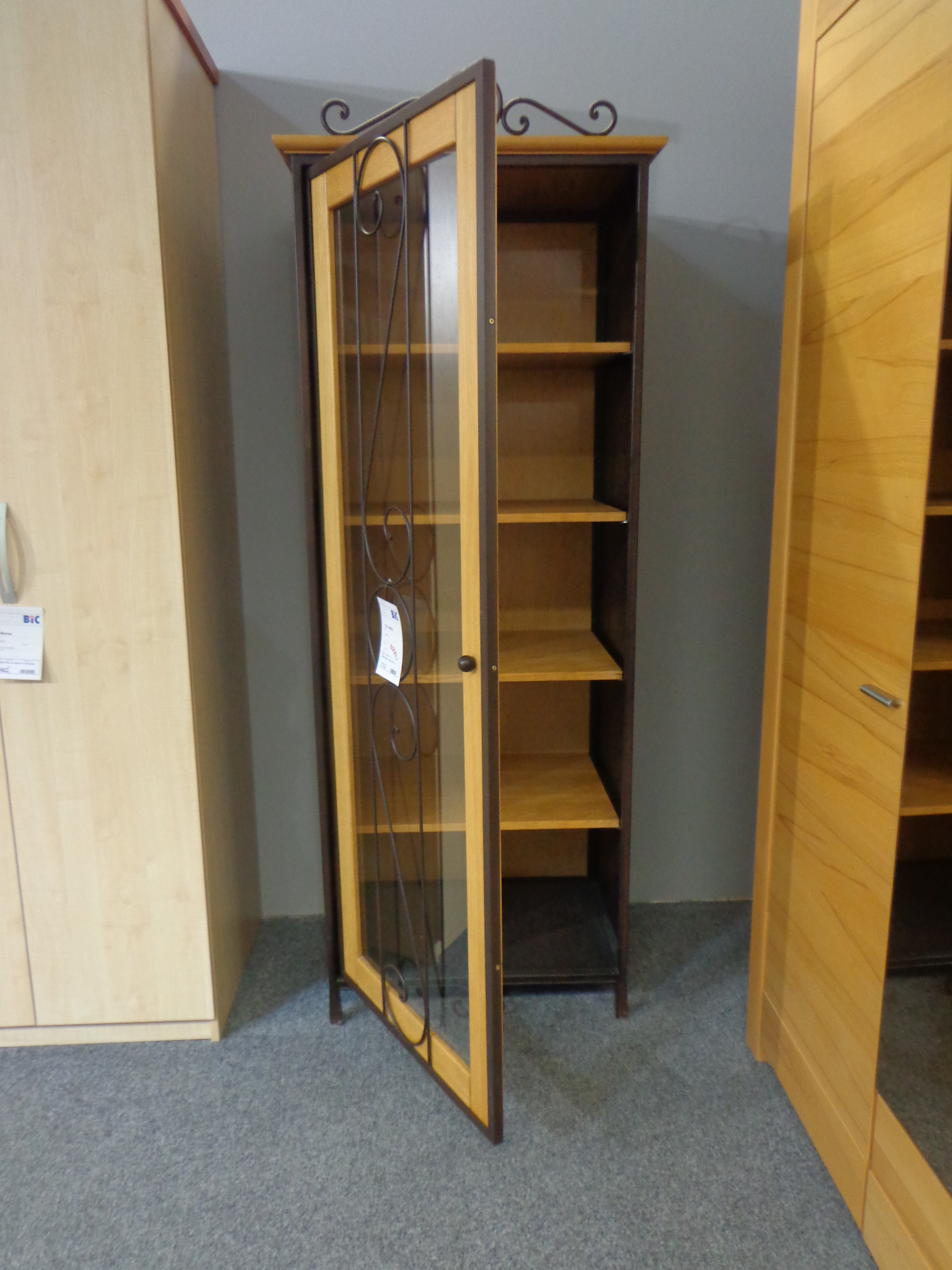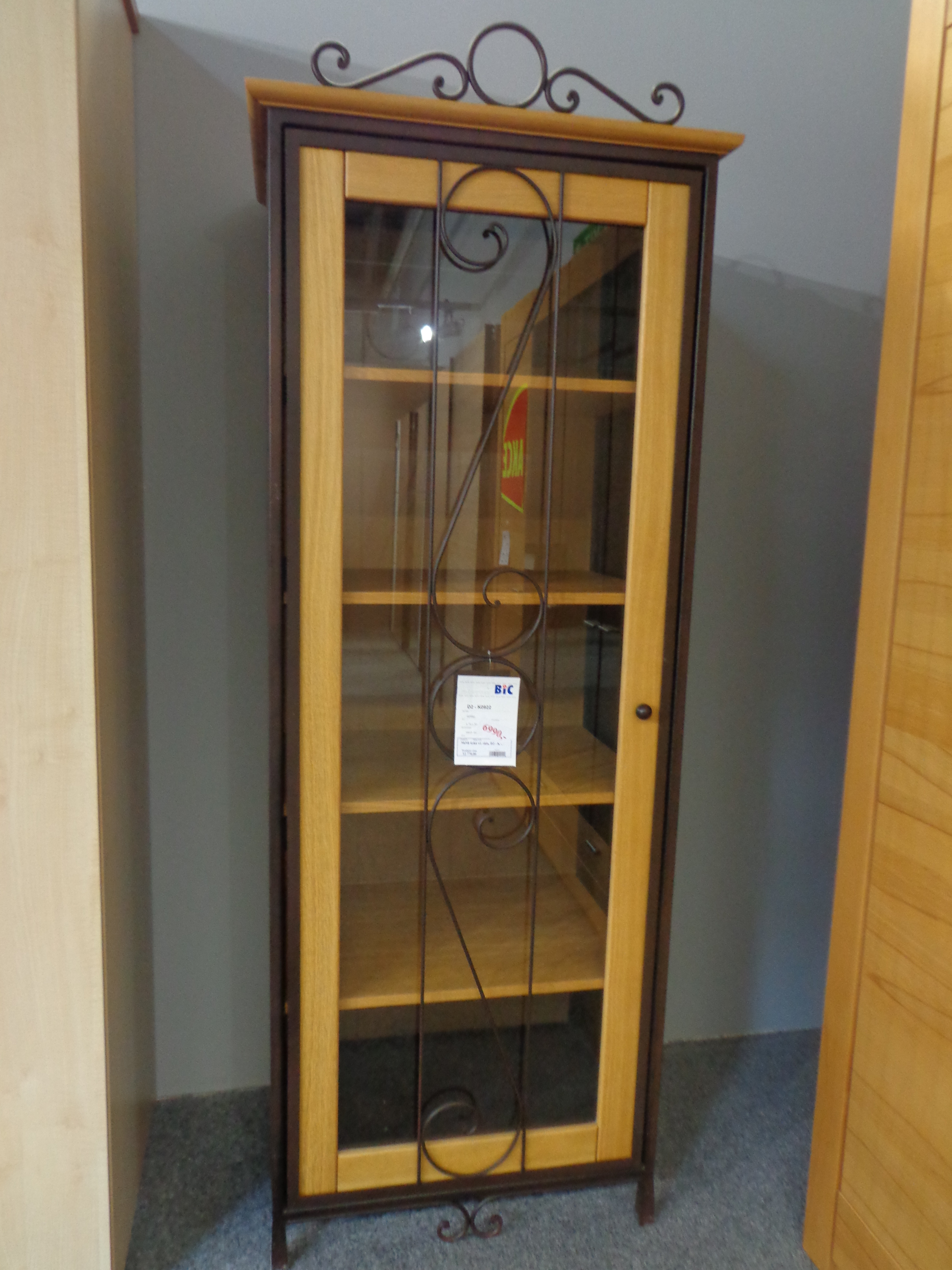 Skříň úzká K 0922 vč.skla v provedení kov/přírodní masivní dub.