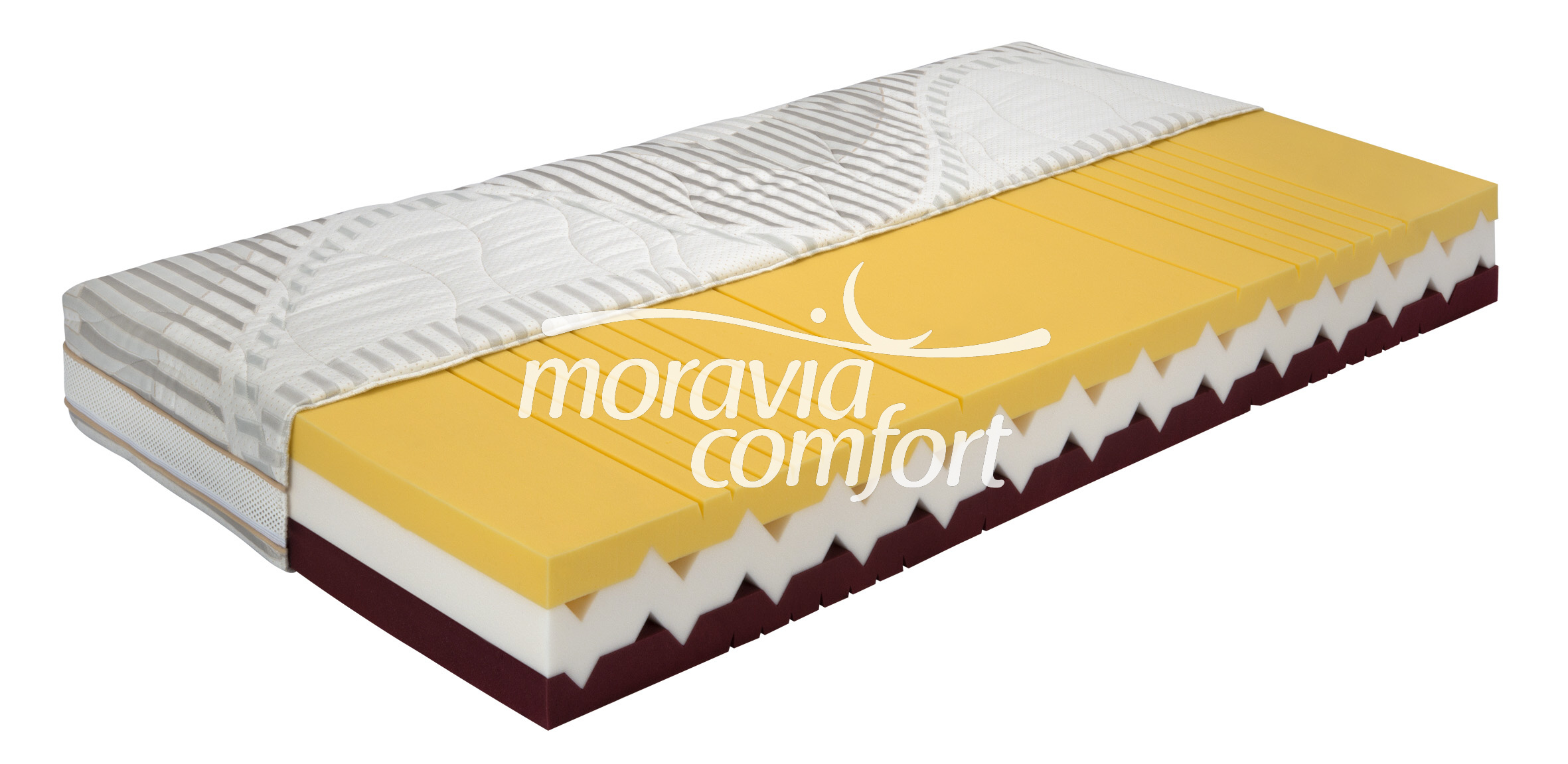 - potah Moravia (60% polyester, 37% viskóza, 2% polyamid, 1% elastan) je výjimečně měkký, příjemně hebký a z přírodní viskózy. Základní surovinou pro výrobu je celulóza (získávána ze dřeva jehličnatých stromů), která látce dodává potřebnou prodyšnost, výborně odvádí vlhkost a vytváří tak optimální mikroklima pro váš zdravý spánek.