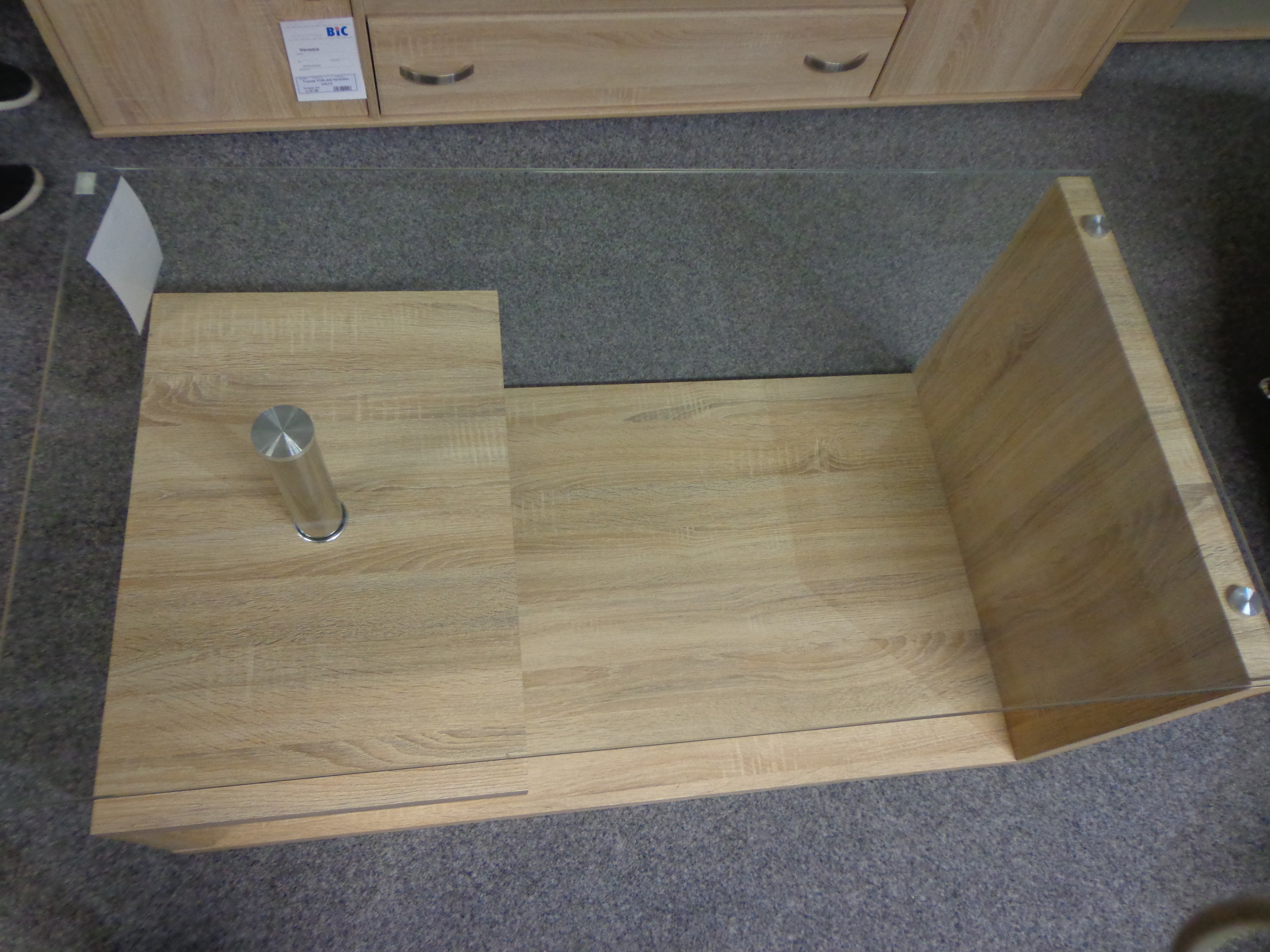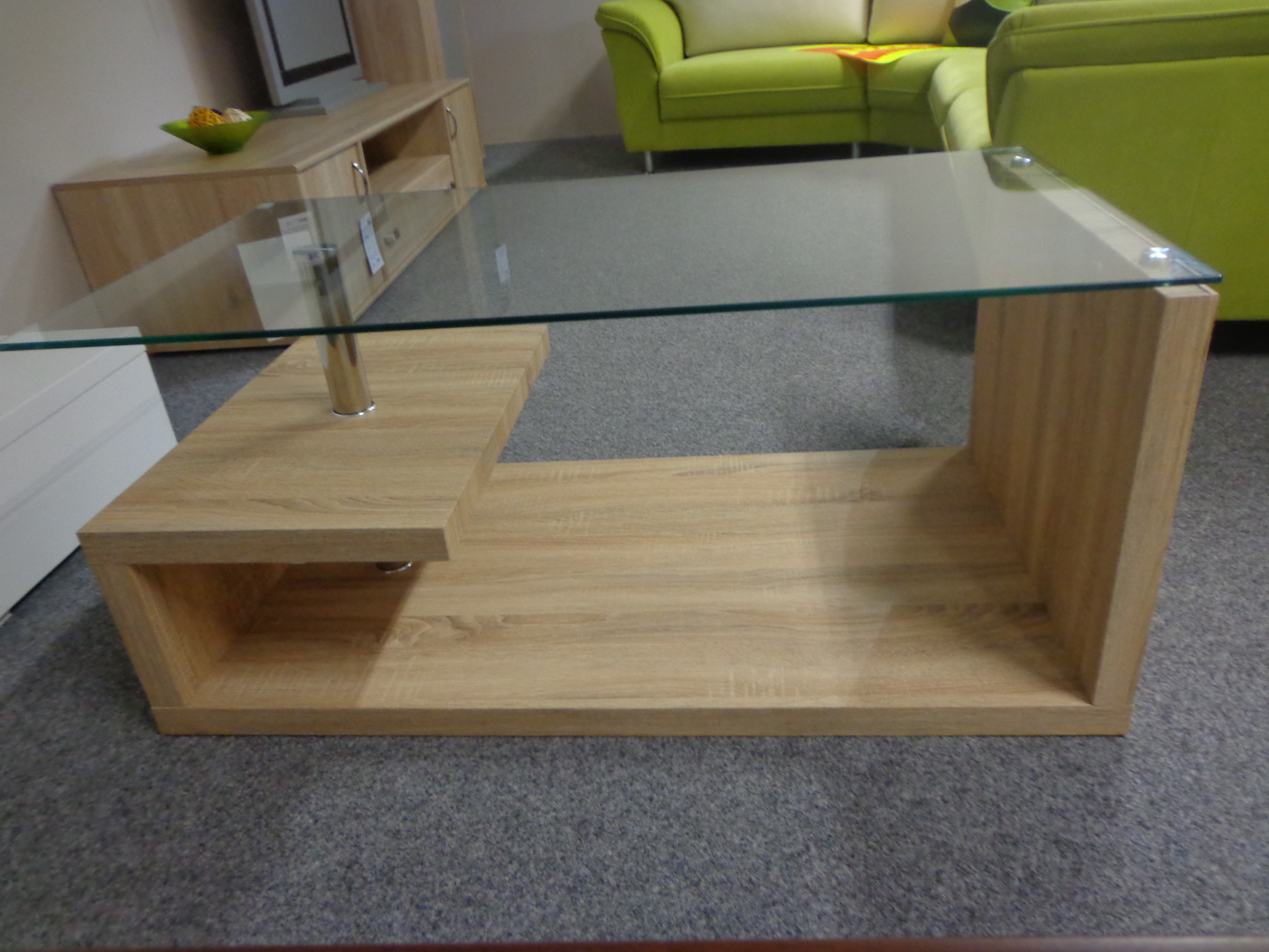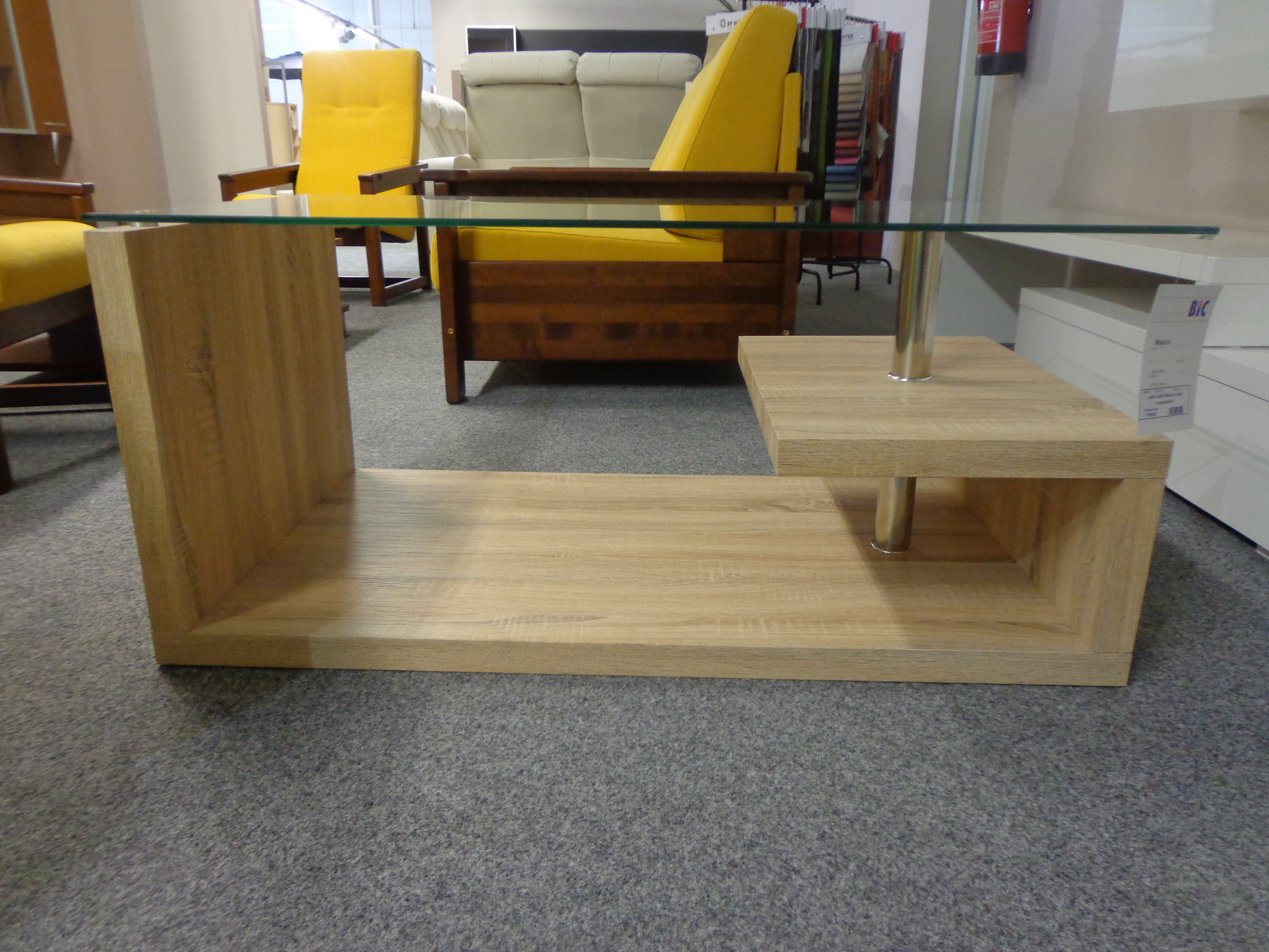 Konferenční stolek Makira v barevném provedení dub sonoma / horní deska čiré sklo.