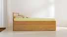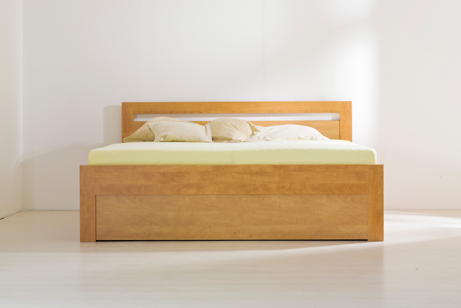 Postel je precizně propracována a vytváří v interiéru pocit dokonalé harmonie. Jednoduché linie čela postele dodávají lůžku upravený vzhled. Při výběru postele můžete volit ze dvou typů materiálu, masivní bukové dřevo a imitaci masivního dřeva. Na výrobek z imitace masivního dřeva je poskytována záruka 10 let a na masivní dřevo je záruka prodloužena na 25 let.