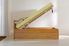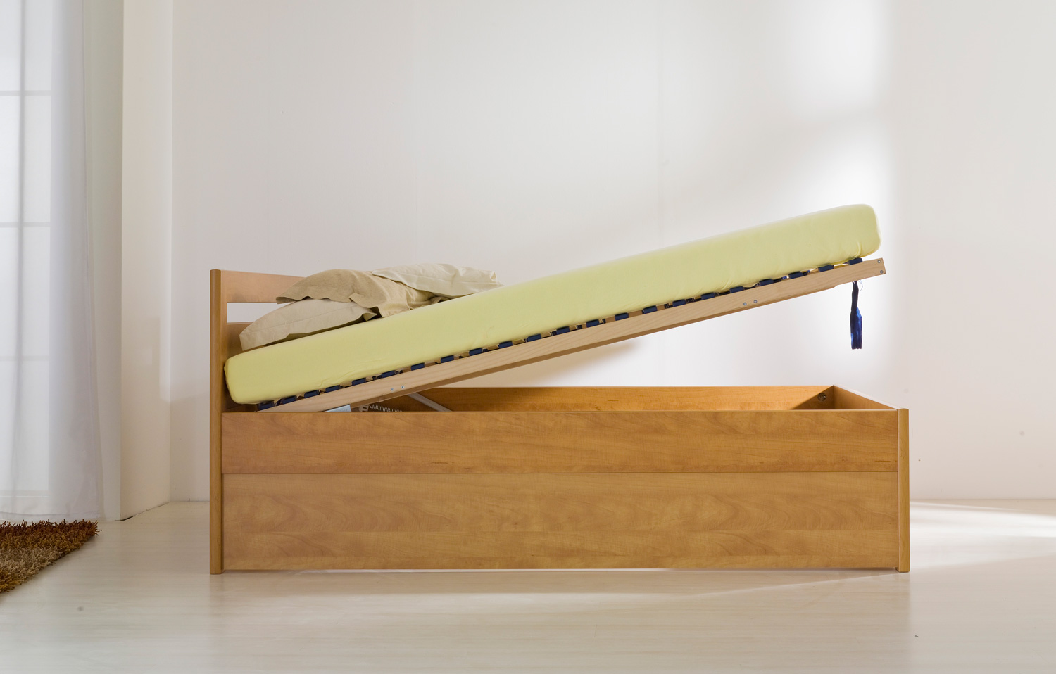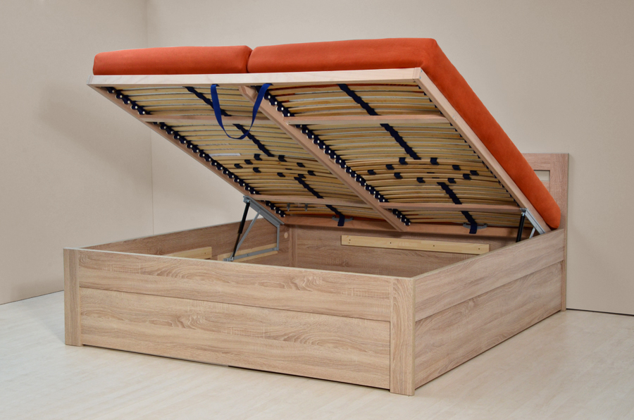 Součástí postele je velký výklopný úložný prostor, který jedinečným způsobem dotváří vzhled postele. Díky dostatečné hloubce má velmi praktické využití zejména pro uživatele, kteří potřebují využít prostor v ložnici na maximum.