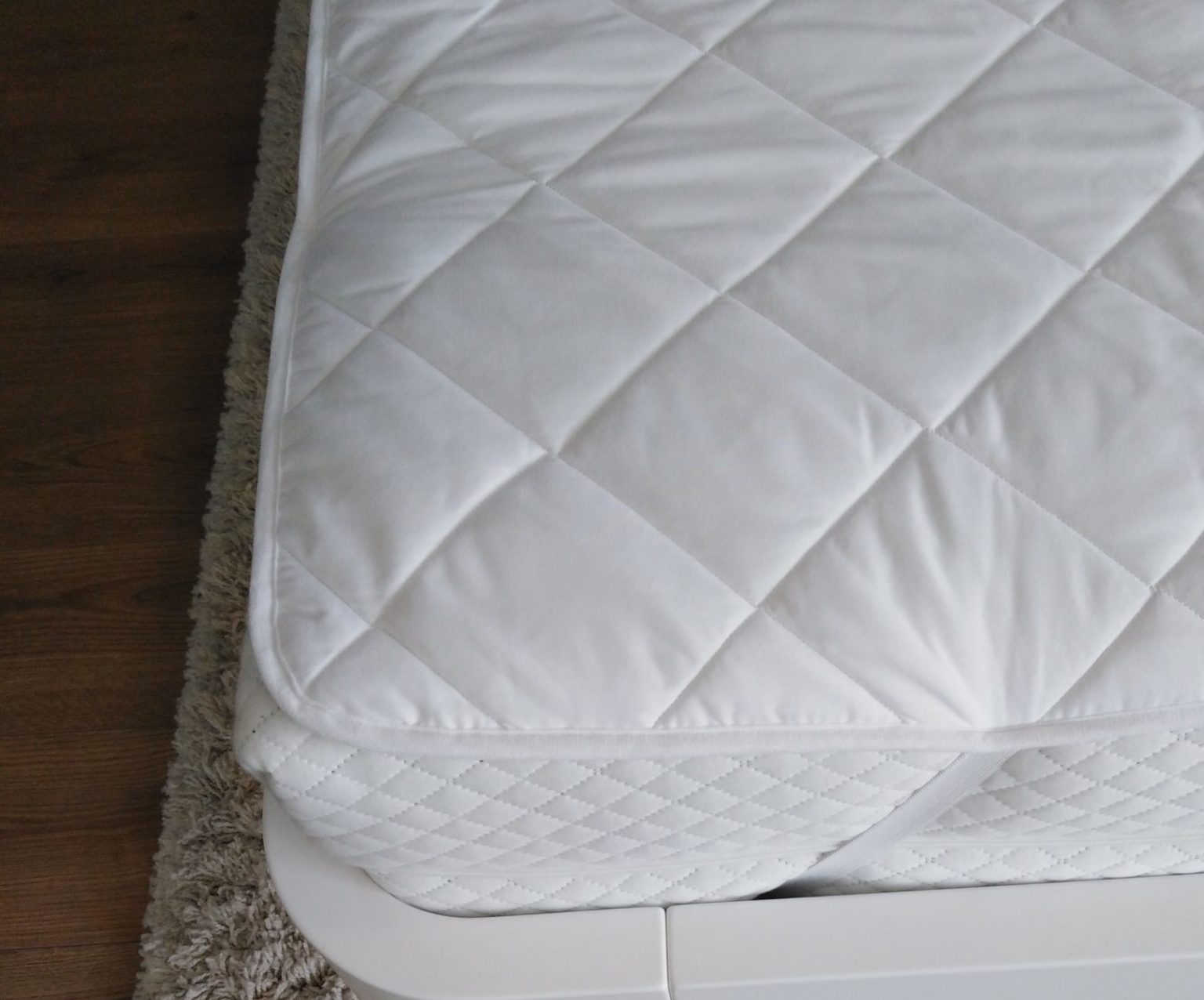 - Podložka se upevňuje na matraci pomocí na gumičky v rozích.