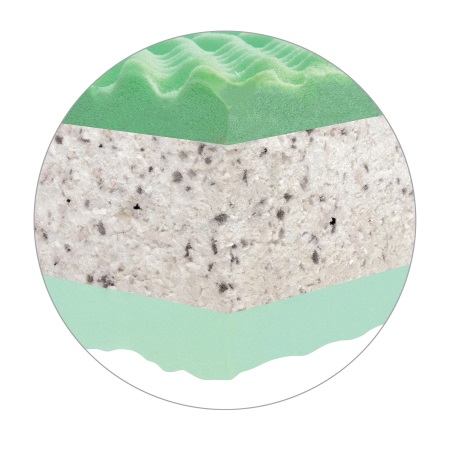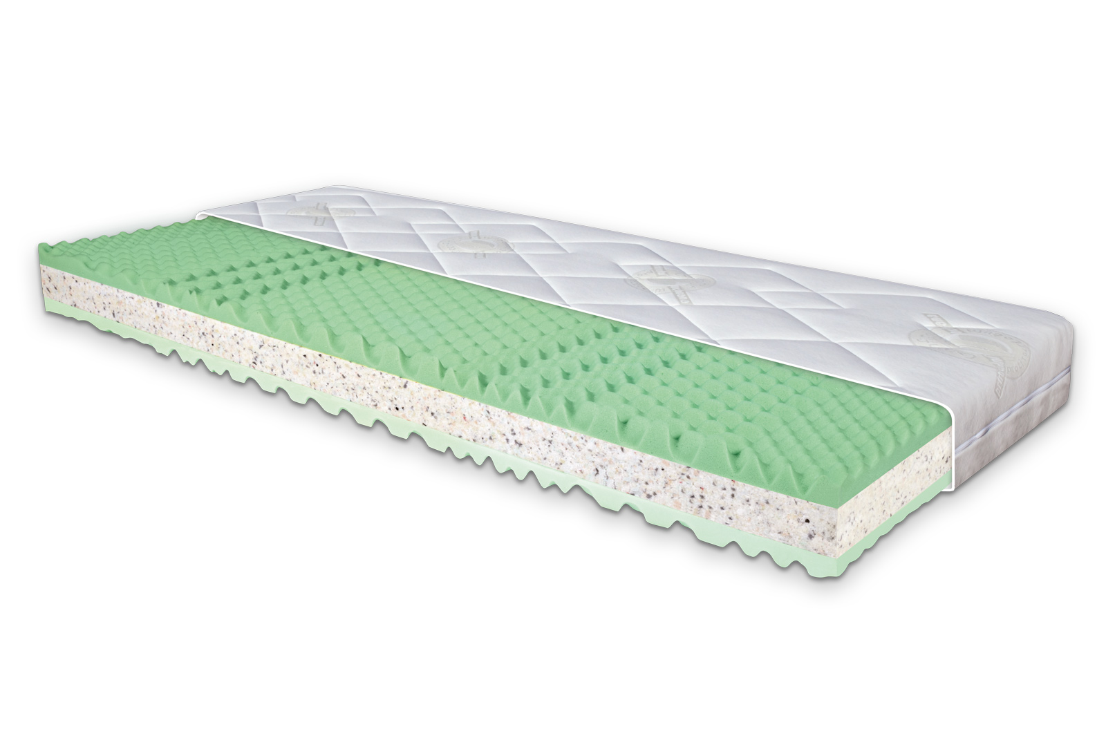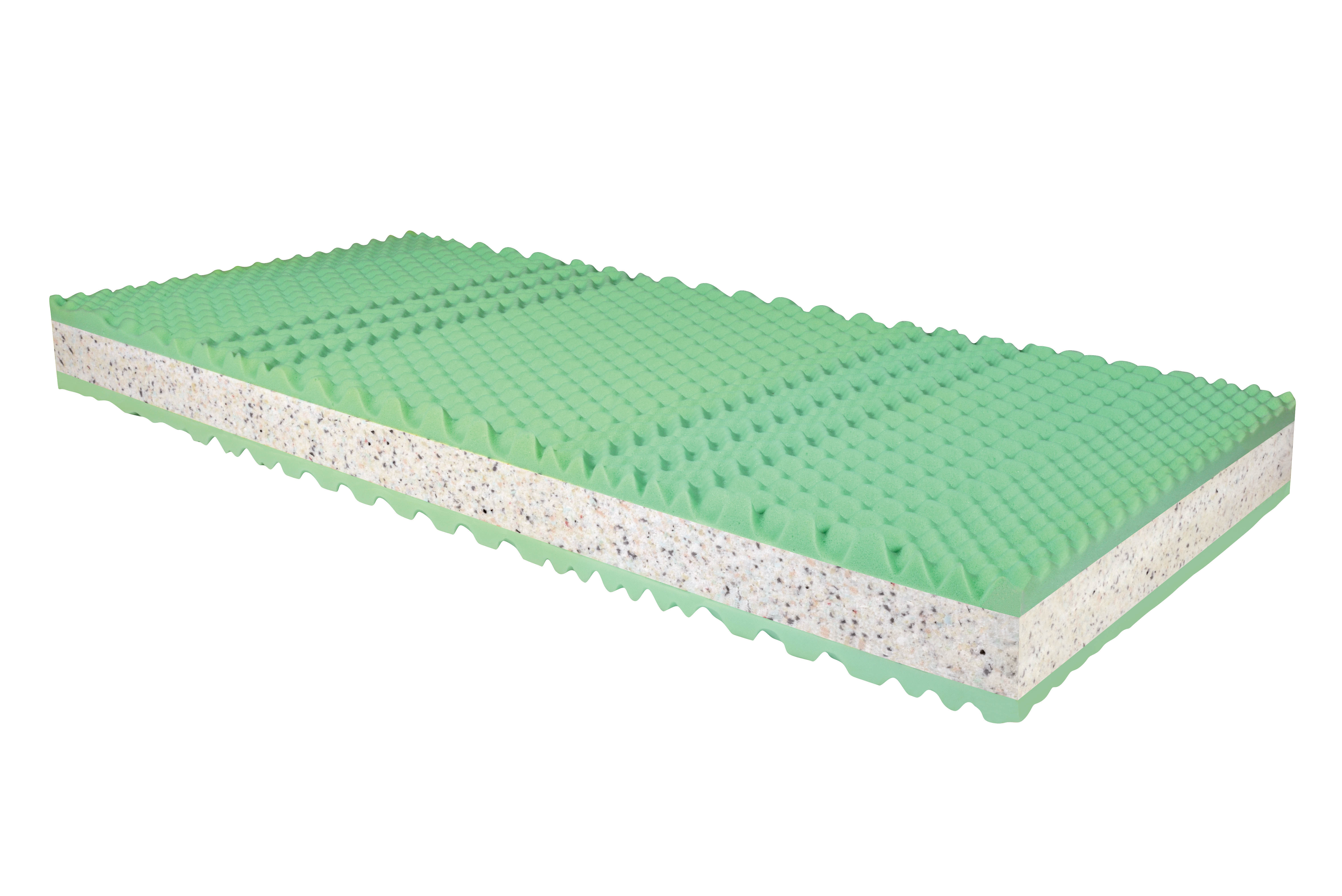 Povrch matrace je opatřen nopkovou úpravou a tím je zónována do 7 anatomických zón. Oboustranná a uživatelsky oblíbená matrace sendvičového typu. Střed matrace je tvořen pojenou RE pěnou, která je díky vyšší objemové hmotnosti nositelem pevnosti a tuhosti. Vrchní strany matrace jsou vyrobeny z PUR pěny a vysoce prodyšné a pružné studené HR pěny, což umožňuje volbu zvolit si tu variantu, která vám momentálně více vyhovuje. Matrace se dodává ve snímatelném a pratelném potahu Greenfirst® 100 g, pratelném na 60°C. Potah je díky svému složení vhodný pro alergiky.