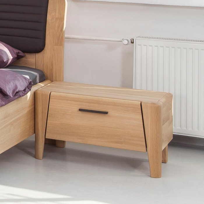 Noční stolek Keros je vyroben z masivního sukatého dubu. Jeho součástí je jedna zásuvka. Povrchová úprava stolku lakováním.
