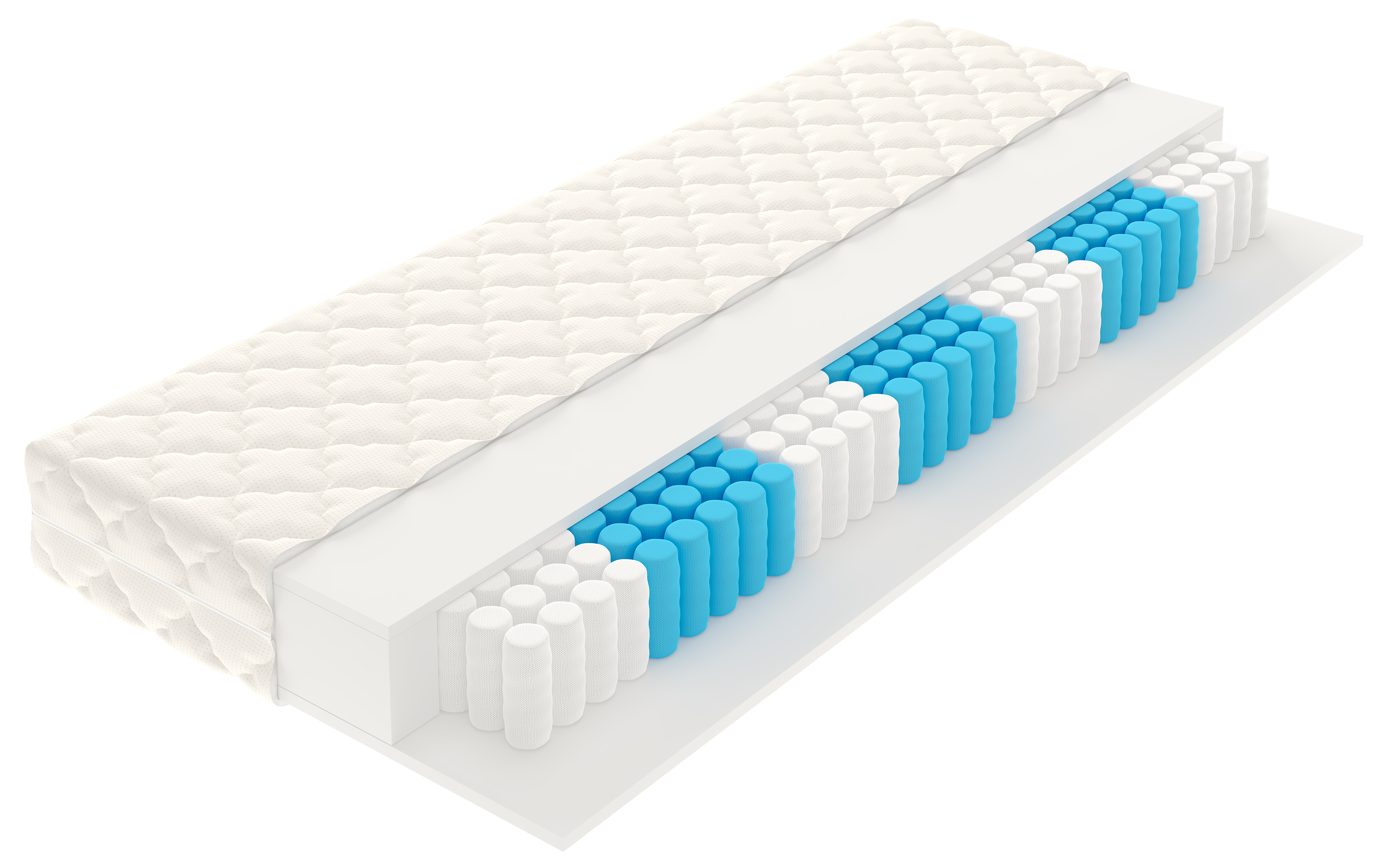 Taštičky: 7 zónové jádro rozložené taštičkami, které jsou různé tuhosti pro lepší rozložení váhy člověka Počet taštiček: 256 na rozměru 1 x 1 m , výška jádra 14 cm Měkké vrstvy: polyuretanová pěna hustota 25 kg/m3, tvrdost 4 kPa, výška 2cm z obou stran