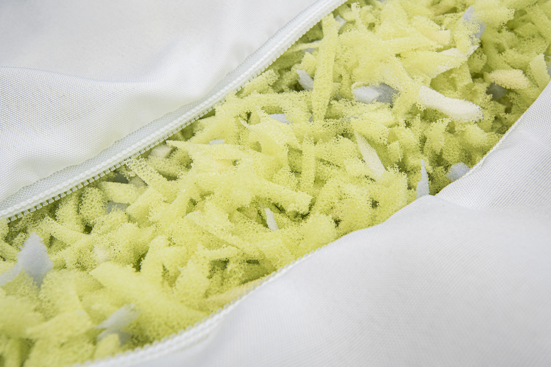 - Polštář je vytvořen z drcené paměťové Visco pěny, která je příjemně měkká a poddajná zároveň.