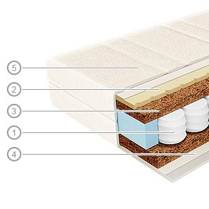 | Jádro | Blok Mini TFK - 153 pružin na m2, kokosová deska, vrstva latexu |