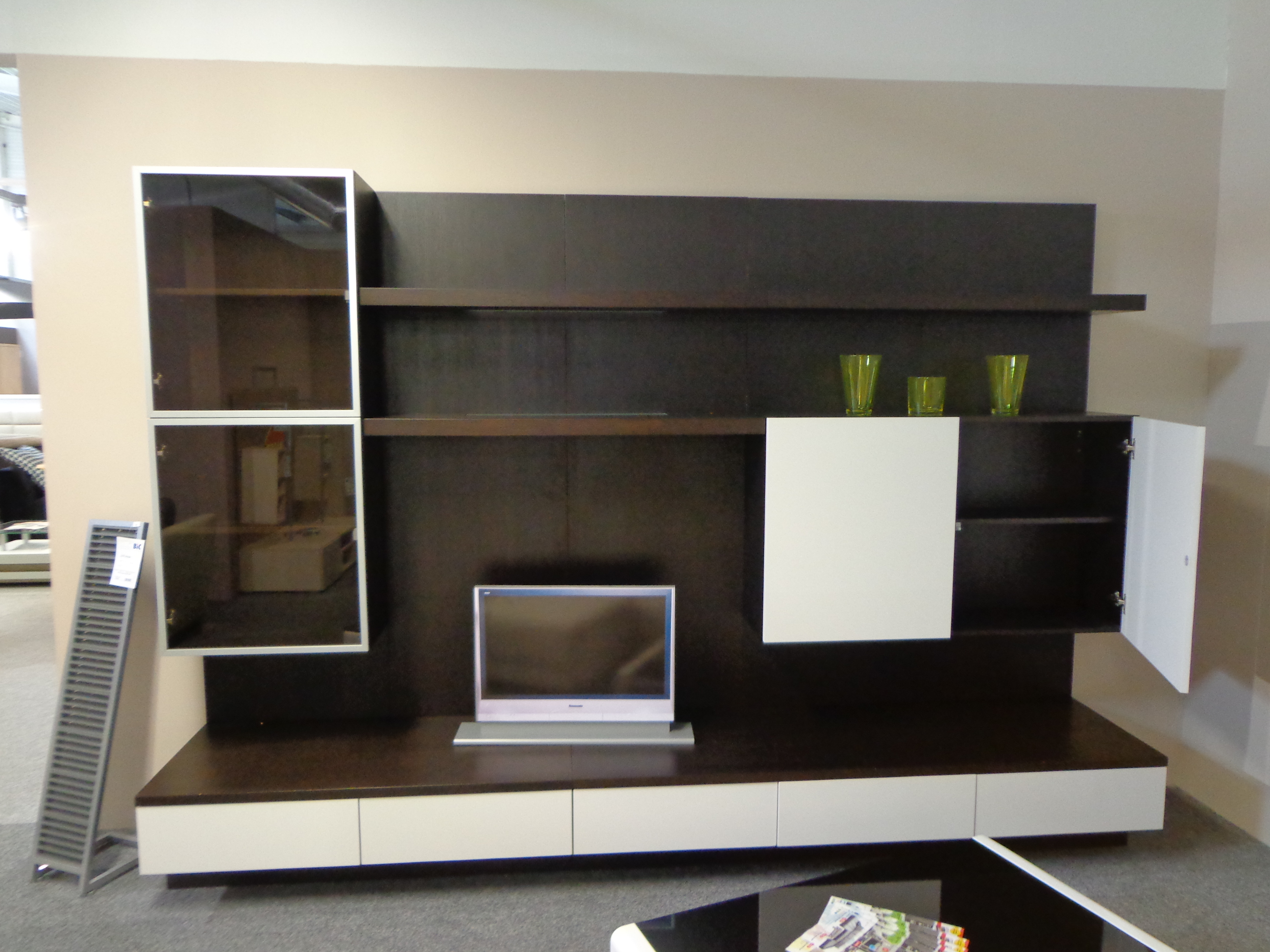 Obývací stěna RINA z přírodní dýhy v barevném provedení venge/bílá.Od českého výrobce Dřevotvar Znojmo.