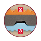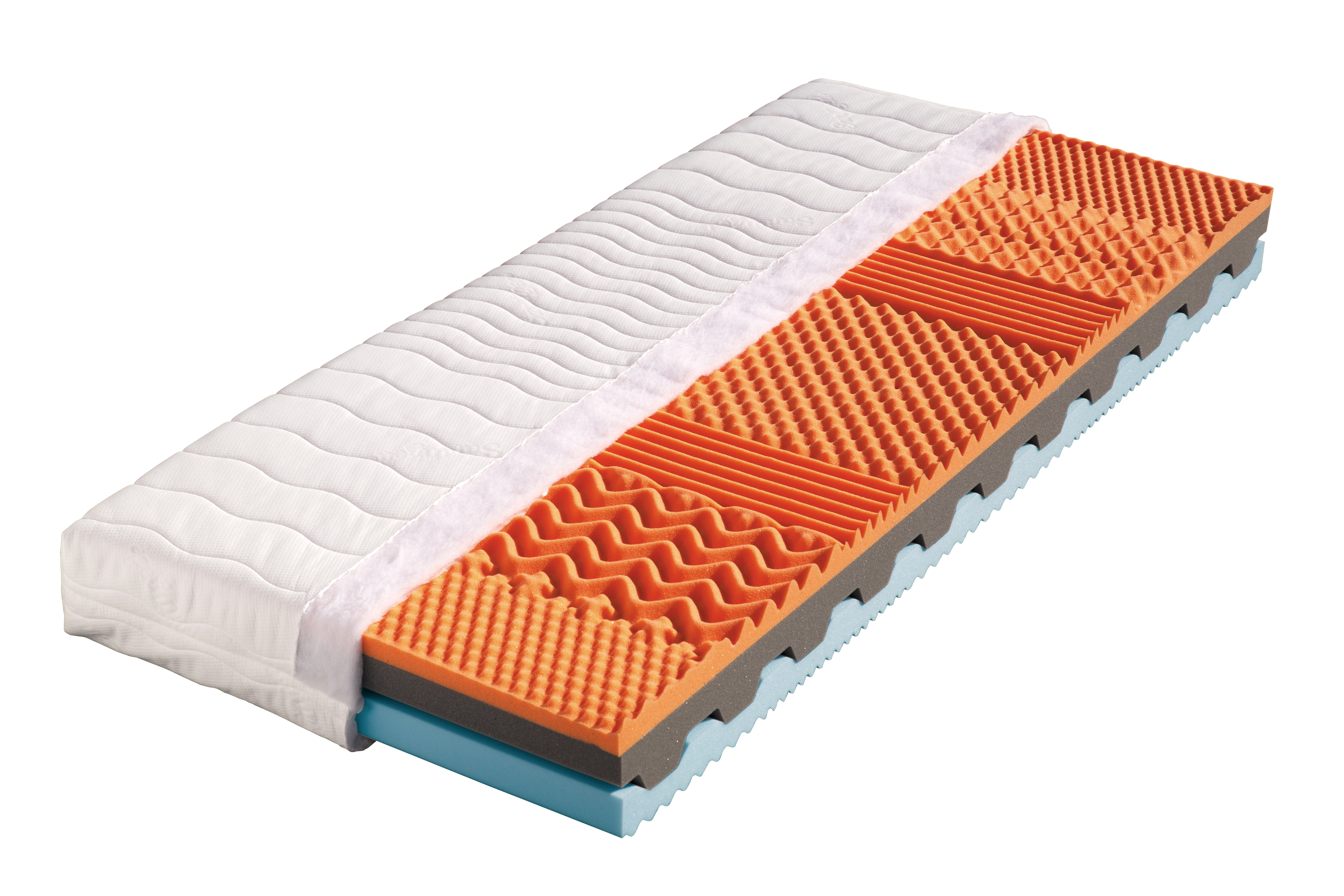 Kvalitní matrace, jejíž oranžovou nosnou vrstvu tvoří oblíbená líná bio pěna tvarovaná do masážních nopů. Bio pěna obsahuje sójový extrakt, který má příznivý vliv na lidský organismus. Střed jádra je složen ze dvou elastických pěn MediFoam odlišných objemových hmotností a je provzdušněn příčnými průduchy, které zaručují změkčení matrace v exponovaných místech.