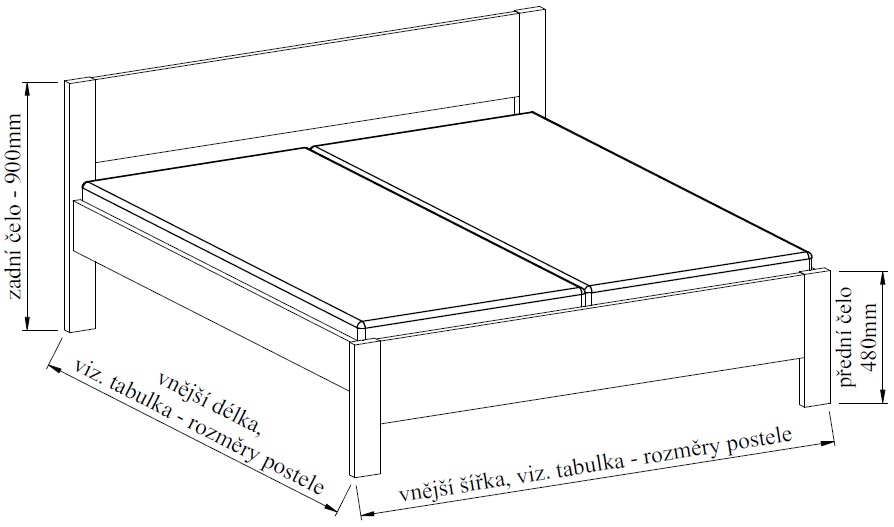 | Vnější rozměr pro 90 x 200 cm | 990 x 2080 mm |