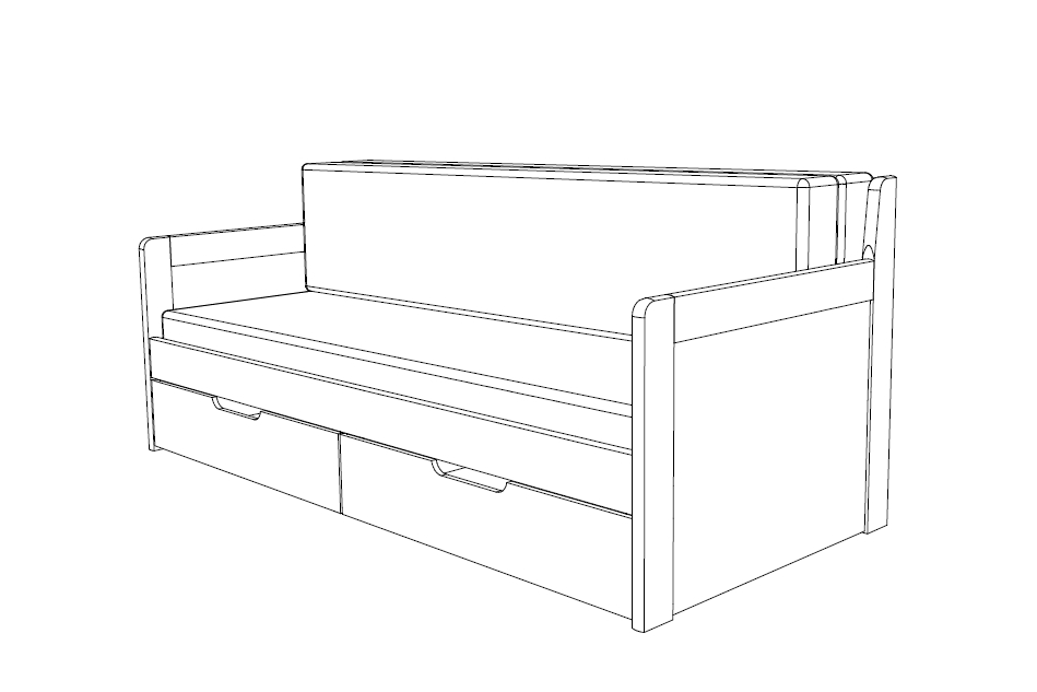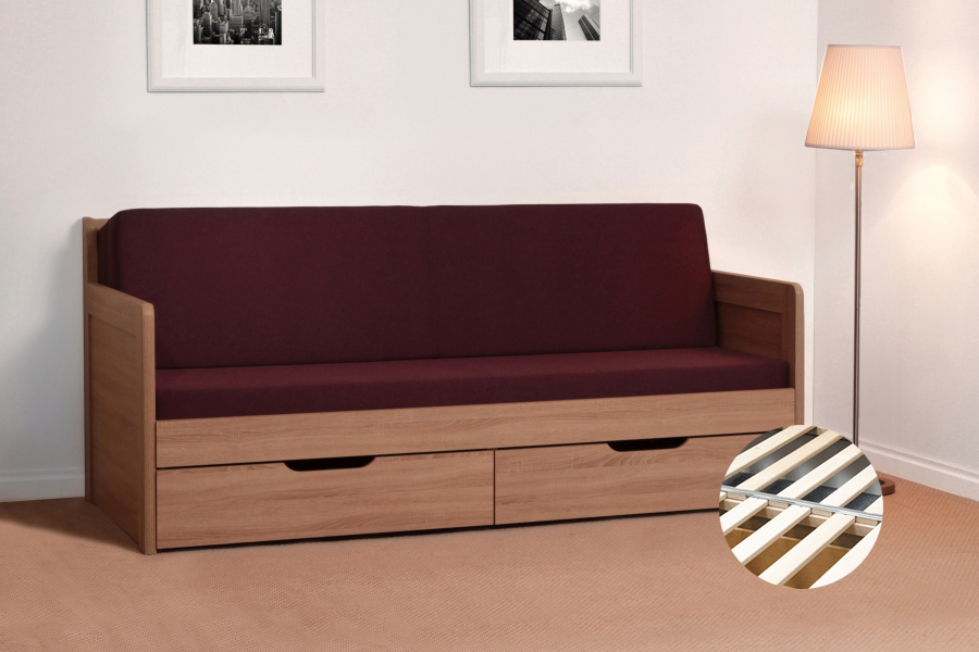 Rozkládací postel TANDEM klasik nabízí velký úložný prostor v podobě dvou oddělených zásuvek, které se dají nezávisle na sobě lehce a jednoduše vysouvat.