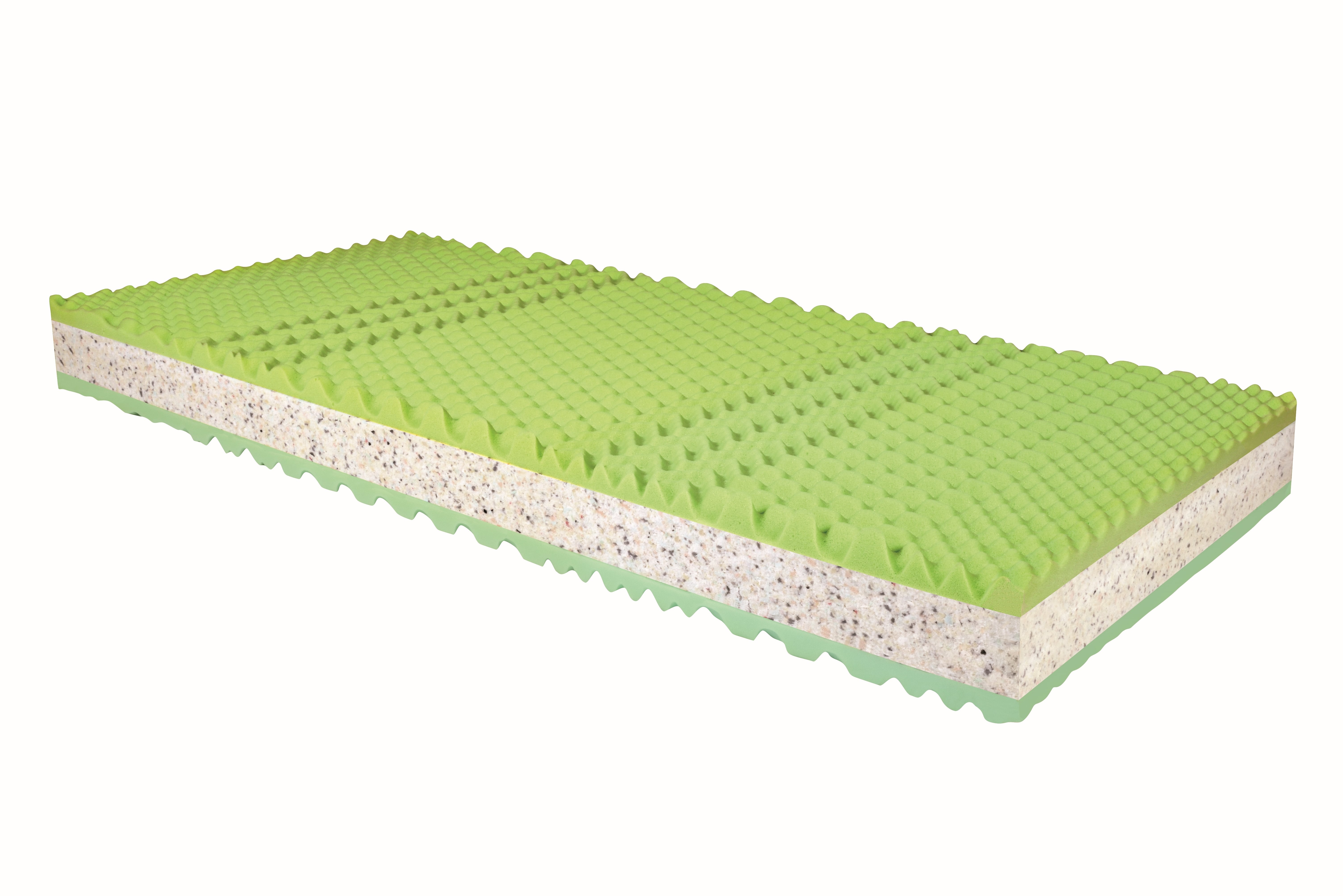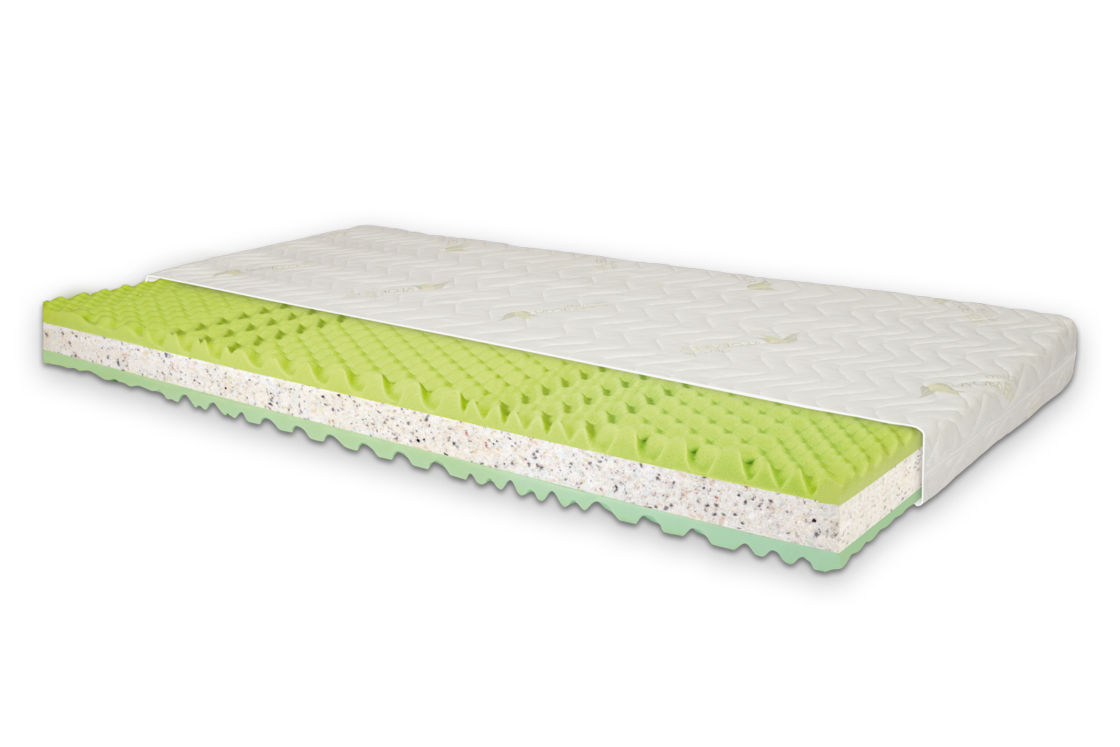 Lehací plocha matrace je upravena nopkovou úpravou a tím je zónována do 7 anatomických zón. Oboustranná matrace sendvičového typu s nopkovou úpravou a rozdílnou tuhostí jednotlivých stran. Horní vrstva matrace je vyrobena z VISCO pěny, střed matrace tvoří pojená RE pěna, která je díky vyšší objemové hmotnosti nositelem pevnosti a tuhosti. Druhá strana matrace je ze studené HR pěny a je určena pro vyznavače tužšího spánku. Matrace se dodává v potahu Aloe Vera 150 g pratelném na 60°C.